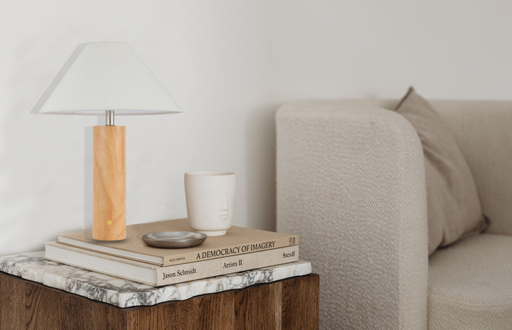 Add natural charm and smart functionality to your home with the Tokyo Timber Table Lamp. Designed with a timber column base in teak/walnut finishes, this stylish piece is topped with a linen conical shade and features intuitive touch control and a Typc-C charging port—perfect for modern living spaces.