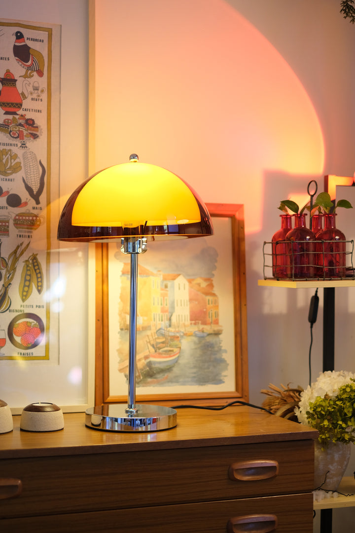 - Warm Ambient Glow – The white inner dome softens light, while the orange outer layer adds vintage flair