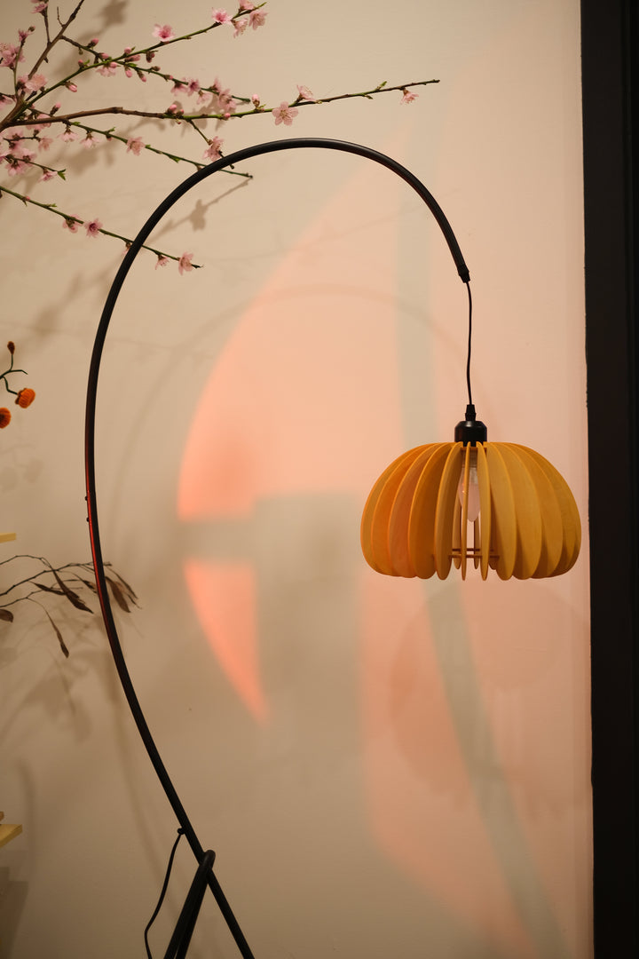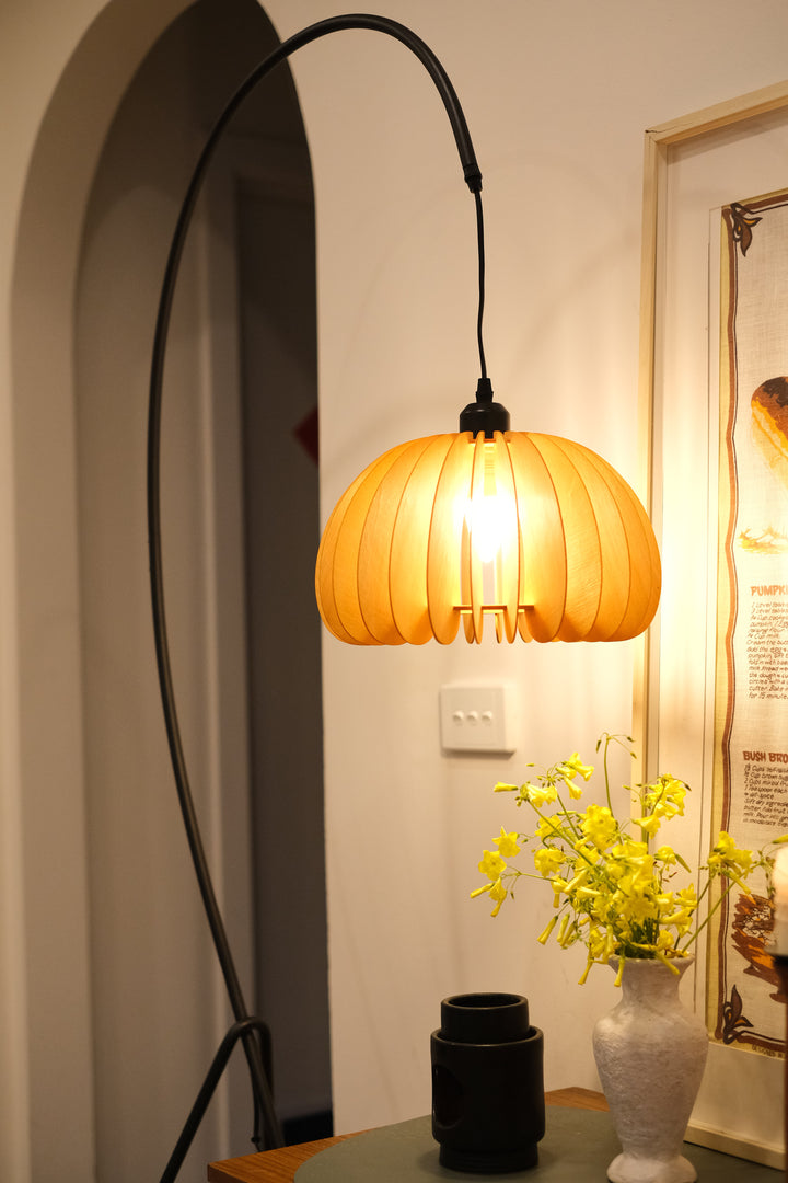 Create a warm, design-forward atmosphere with the Hazel Tripod Wood Pumpkin Floor Lamp, a sculptural statement piece that blends retro charm with modern lifestyle design. Its gracefully curved arc stand supports a handcrafted wooden pumpkin shade, casting soft, cozy lighting that makes any space instantly inviting. Adjustable in height and designed with a stable tripod metal base, Hazel is the perfect blend of decorative light and functional art.