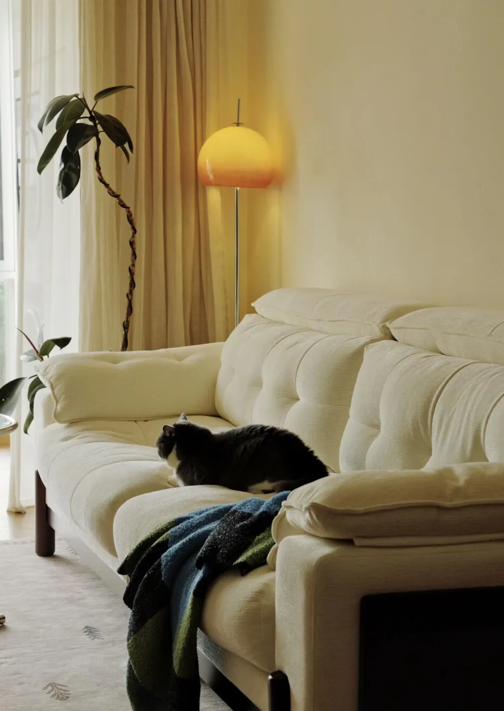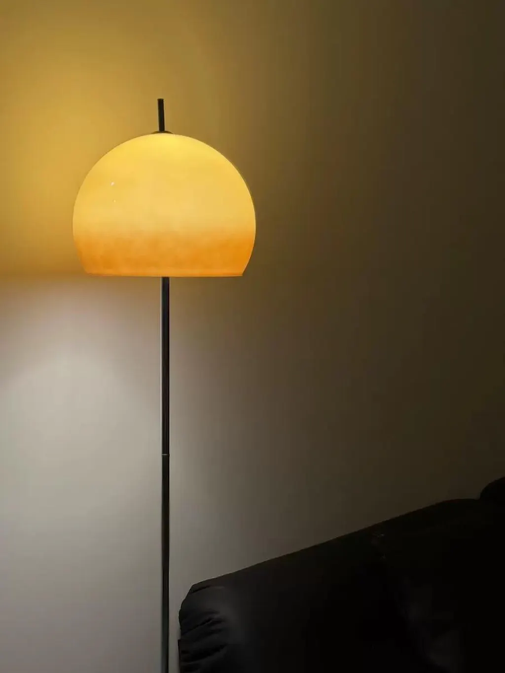 Olivia Floor Lamp with Bauhaus design – Sculptural Glow with Amber Dome for Living Spaces