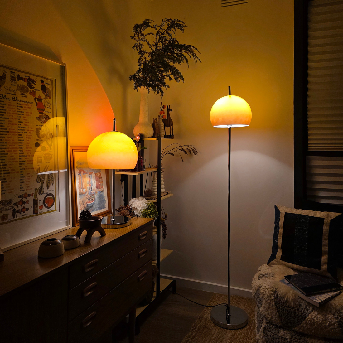 Olivia Mushroom Bauhaus Lamp Set – Matching Table & Floor Lamps with Amber Glow
