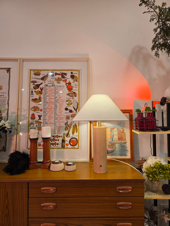 Add natural charm and smart functionality to your home with the Tokyo Timber Table Lamp. Designed with a timber column base in teak/walnut finishes, this stylish piece is topped with a linen conical shade and features intuitive touch control and a Typc-C charging port—perfect for modern living spaces.