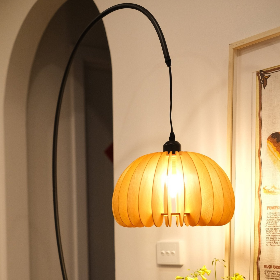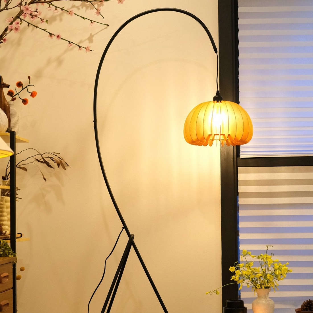 Hazel Tripod Wood Pumpkin Floor Lamp – Sculptural Modern Arc Lighting for Cozy Interiors