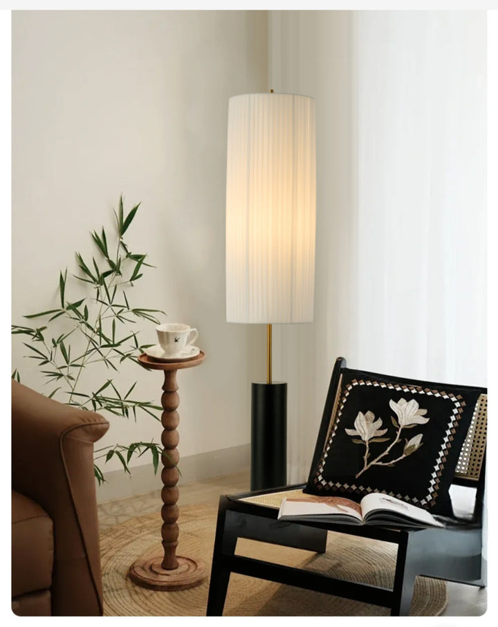Zen Art Japandi Floor Lamp – Pleated Column Shade in Wabi-Sabi Style for Modern Interiors
